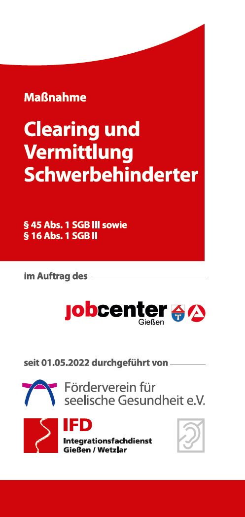 Der Förderverein für seelische Gesundheit e.V. und die Lebenshilfe Gießen haben ihre Beratungsangebote zum Thema “Arbeit und Behinderung“ in einer Bürogemeinschaft als Fachberatungsstelle „Integrationsfachdienste“ zusammengelegt.